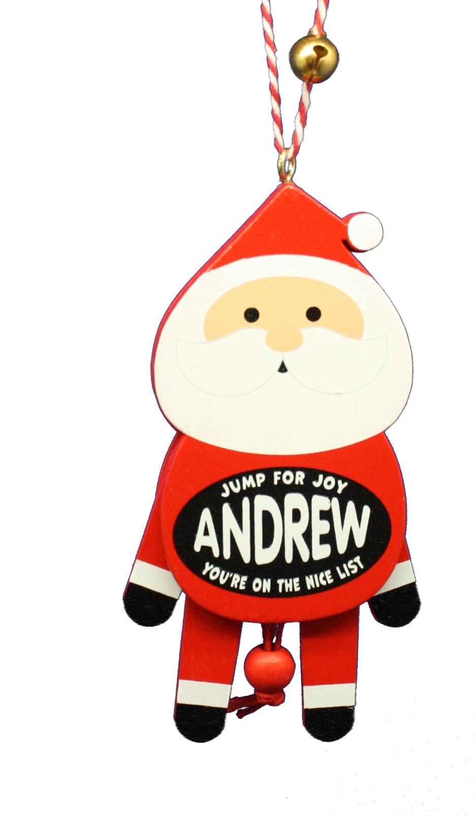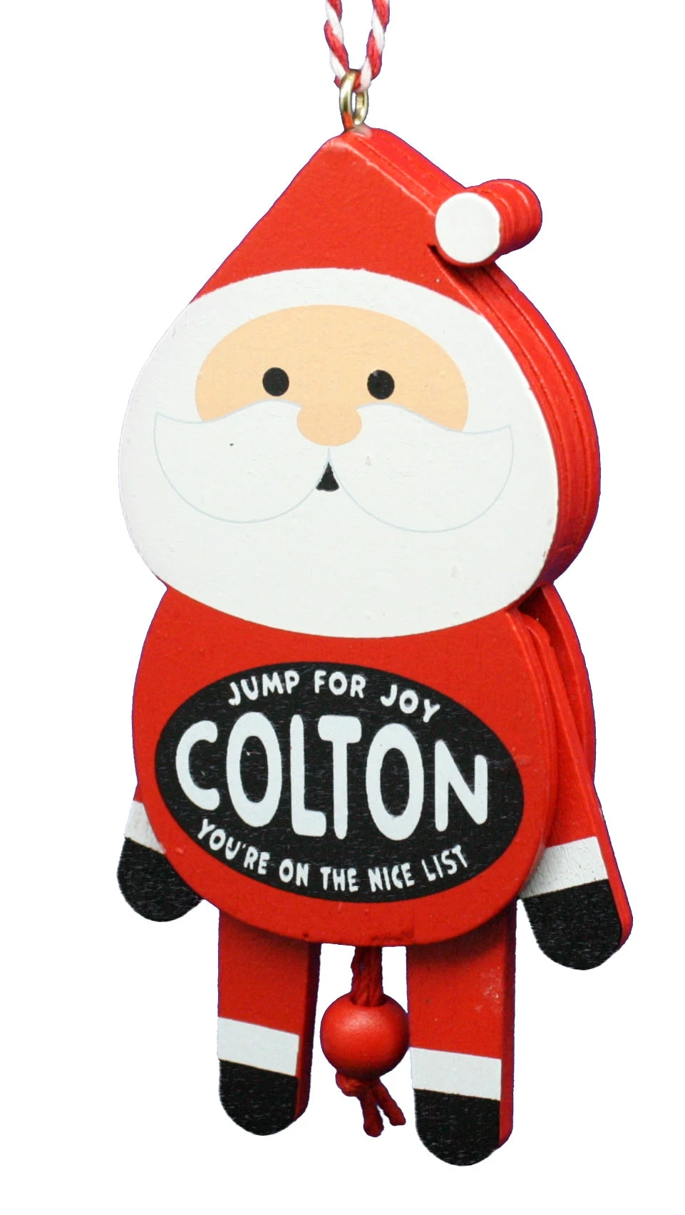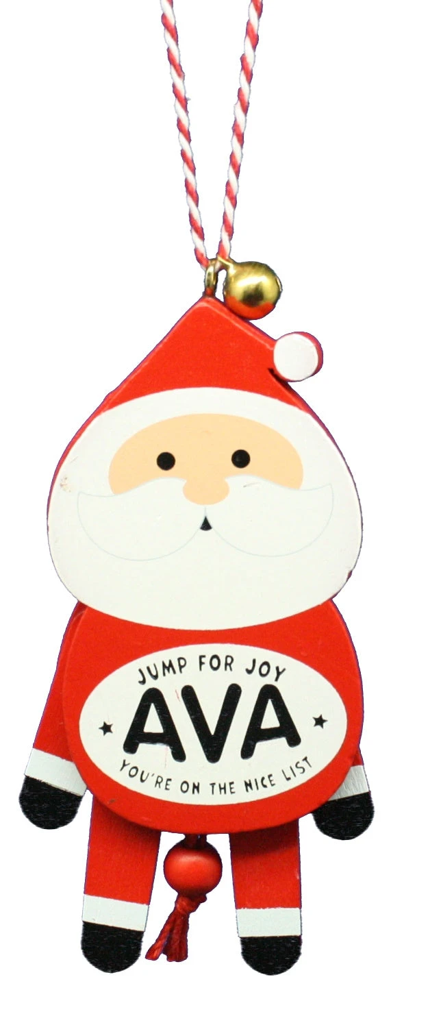 Add a touch of tradition and color to your holiday decor with a wooden Tree Hanging Decoration suitable for the entire family. Each Christmas Dancing Decoration features one Christmas character accompanied by delightful taglines like “Merry Christmas Anthony to The Greatest Snowman” and “Jump for Joy AVA You’re on The Nice List”. Plus, give the string a tug and watch your Christmas Dancing Decoration spring to life with joyful jumps and dances.