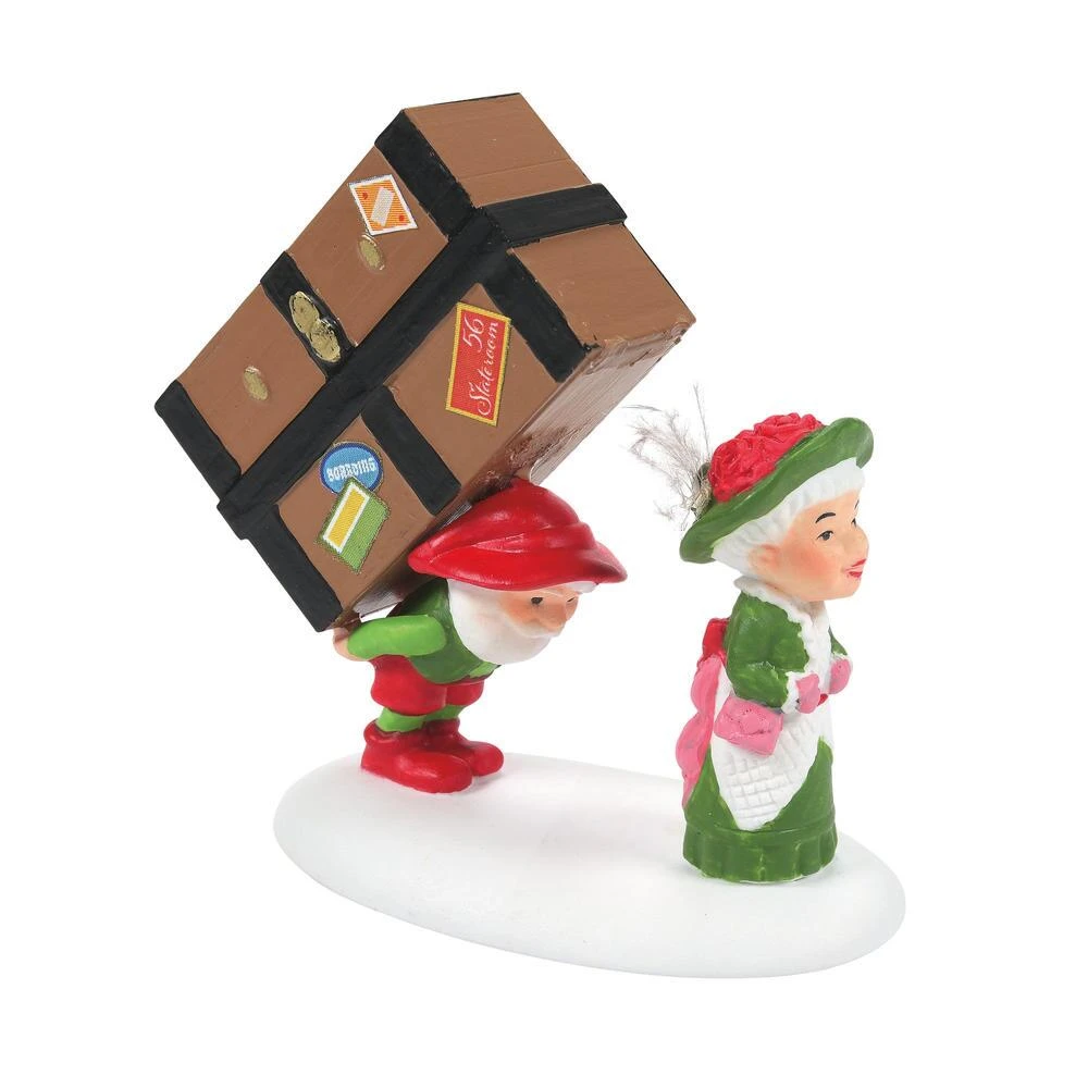 We’re not sure what she has packed, but Mrs. Elf seems prepared for any occasion while staying at the ” Pine Cone B & B” .