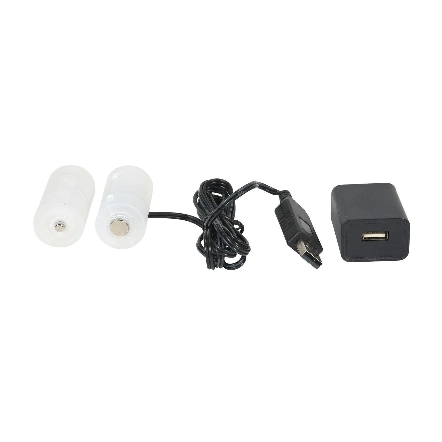 - Includes 2 USB Powered ‘C’ batteries, USB 110v POwer Block, and battery box to hold the ‘C’ Batteries if needed