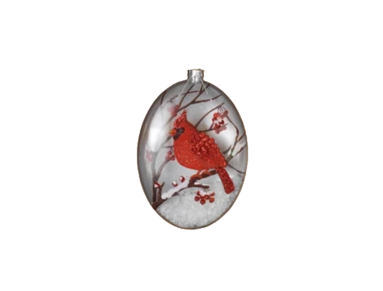 Glass Disc ornament with a Cardinal scene within. The glass is filled with faux snow (the real stuff kept melting!)