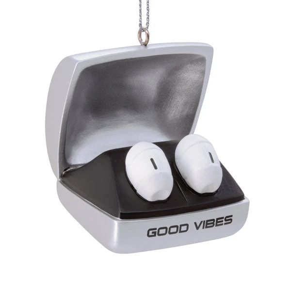 Celebrate the rhythm of life with this fun earbuds ornament, a perfect addition for music lovers! Designed to resemble a sleek case with wireless earbuds nestled inside, this charming ornament brings a modern touch to your holiday décor. Embellished with the uplifting phrase “GOOD VIBES,” it captures the essence of joyful tunes and the magic of music.