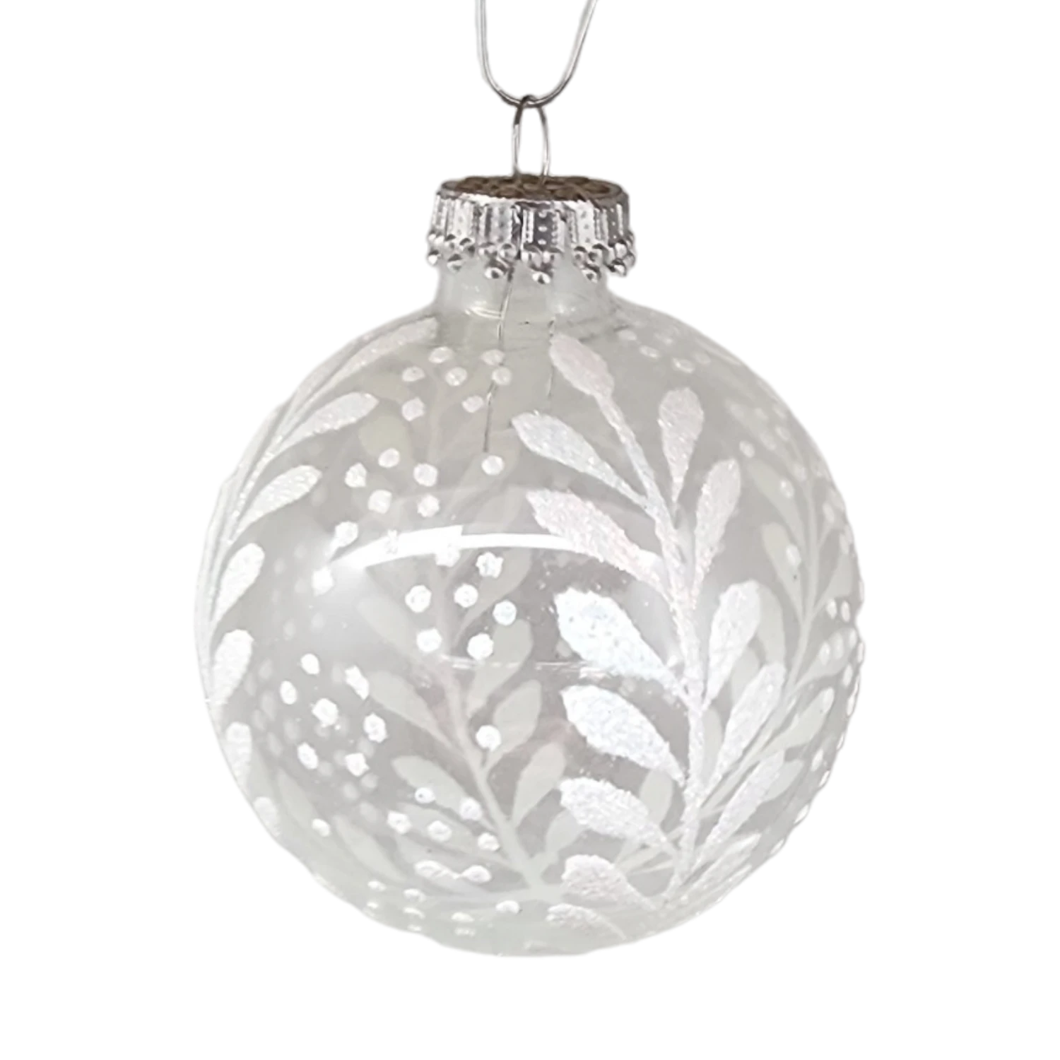 Bring a touch of nature’s elegance to your holiday decorations with our “Whimsical Winter Flora” ornament set! Each gorgeous ornament, just about 2.5 inches in diameter, features delicate white botanical patterns elegantly swirling across a translucent glass surface. The combination of the lush design and clear finish creates a whimsical charm that truly captures the beauty of winter’s quiet grace, encouraging a serene and peaceful atmosphere in your home during the busy holiday season.