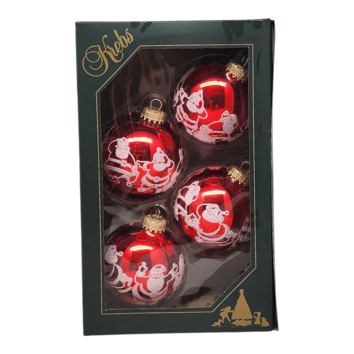Capture the joyful essence of the holiday season with our delightful set of four red glass ball ornaments, each cheerfully adorned with whimsical Santa Claus designs! Measuring just over 2.5 inches in diameter, these charming ornaments feature a vibrant red finish that beautifully contrasts with the sparkling white glitter illustrations of Santa enjoying festive activities. They are sure to add a playful and enchanting touch to your Christmas tree or seasonal décor!