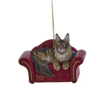 This cat on a red sofa ornament assortment is a festive addition to any home or holiday décor.