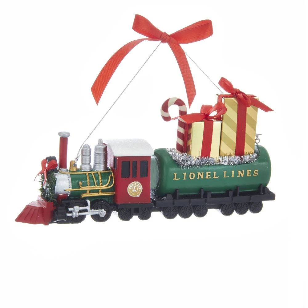 Kurt Adler’s Lionel train ornament is a wonderful addition to your home or holiday décor. Featuring a red and green ” Lionel Lines” train, red and gold presents, a candy cane and wreath this ornament is sure to become a favorite of fans and collectors alike.