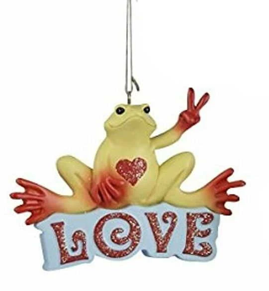 Add a Zen touch to your home décor with these Peace Frog ornaments from Kurt Adler! This assortment features three differently styled frog ornaments. Choose from a blue frog with the word, ” faith” , a yellow frog with the word, ” love” , and a green frog with the word, ” hope” .