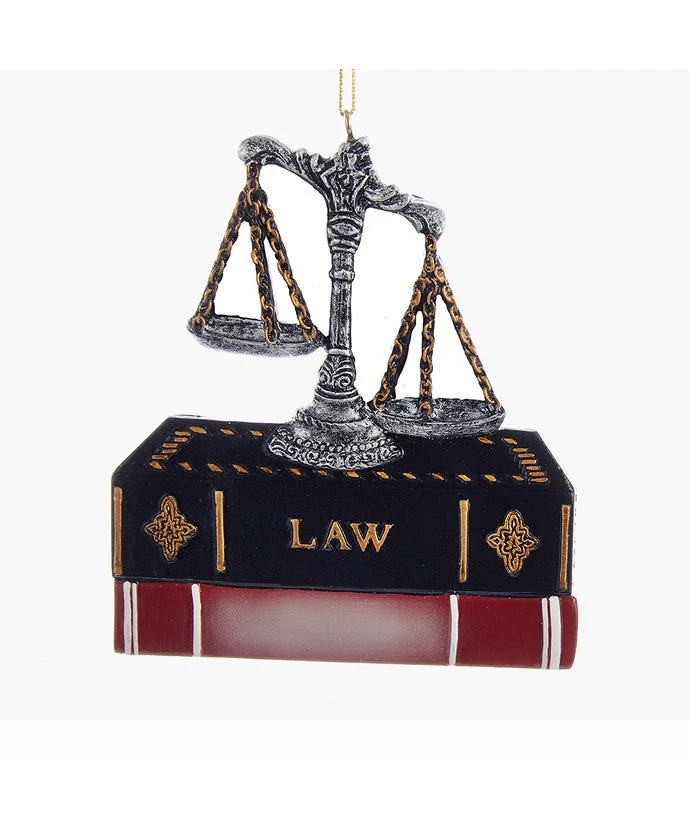This resin lawyer ornament from Kurt Adler is a beautiful addition to any holiday décor. Perfect for lawyers or anyone studying to become a lawyer or Jurist, this ornament features the Scales of Justice on top of two law books.