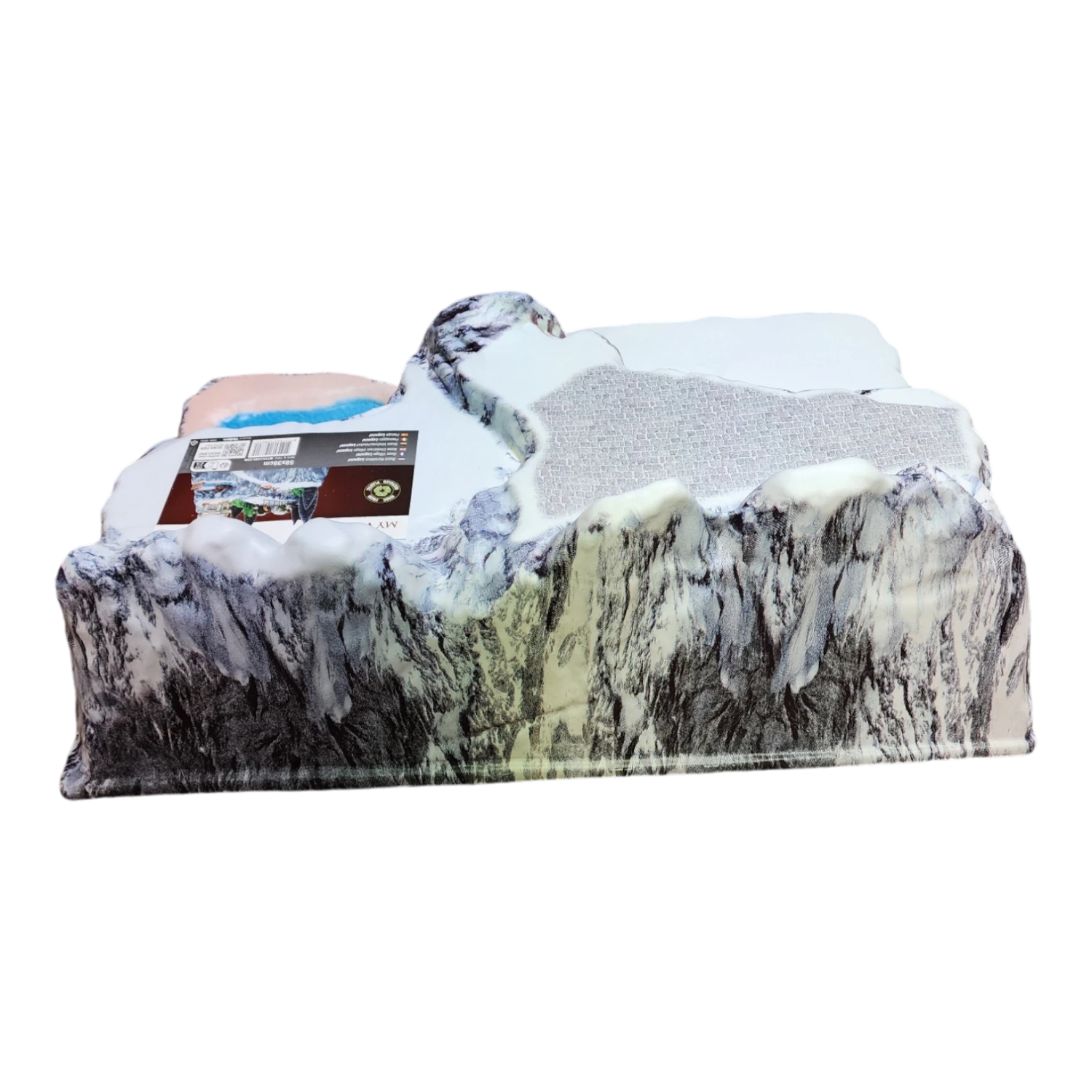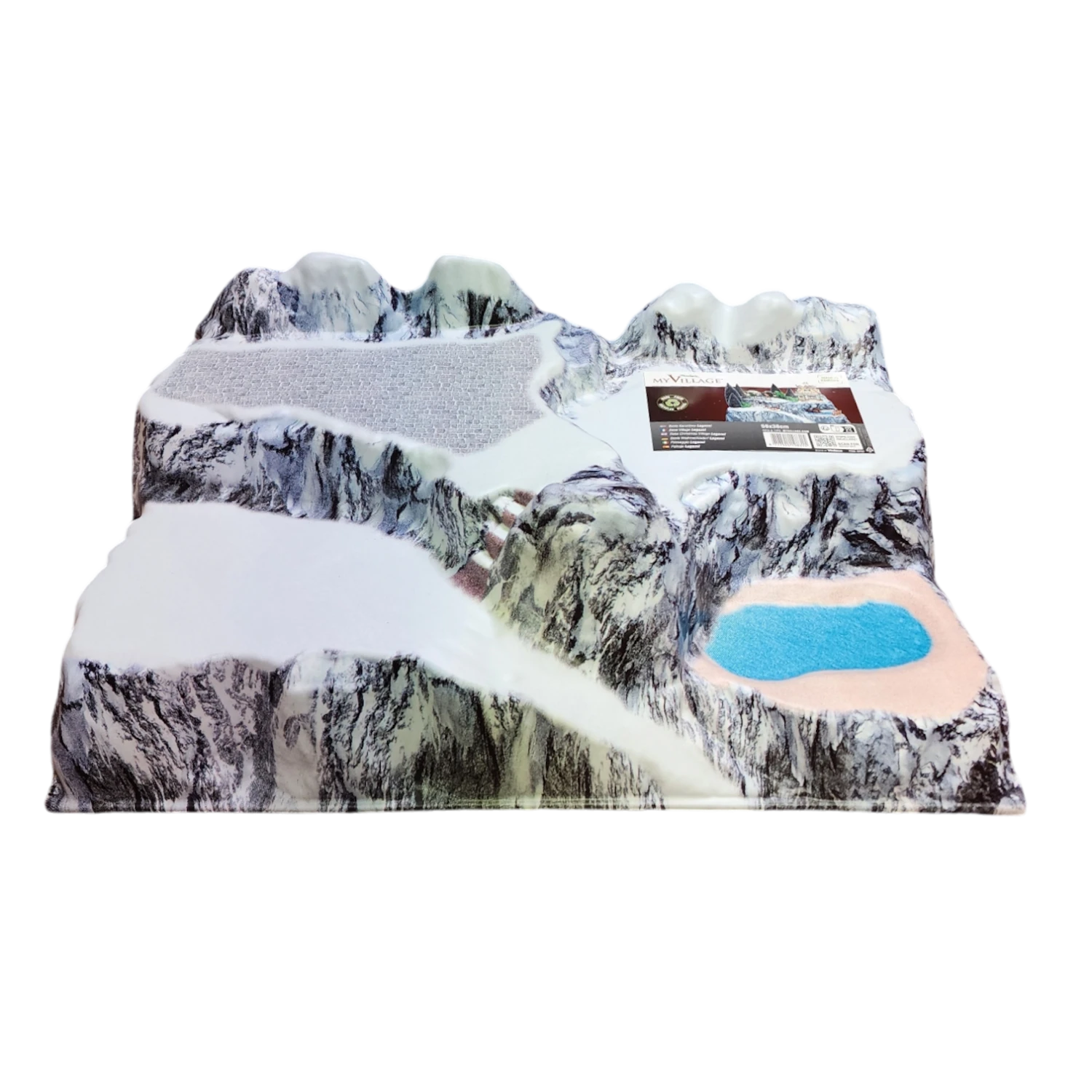 Step into a world of whimsical winter fun with this captivating village landscape display. Measuring about 22.8 inches long, almost 15 inches wide, and 7.5 inches high, this delightful piece showcases a bustling mountain scene teeming with festive activities. From children joyfully sledding down snowy slopes to families gathering in front of a cozy, inviting chalet, every inch of this display captures the charm and excitement of the holiday season.