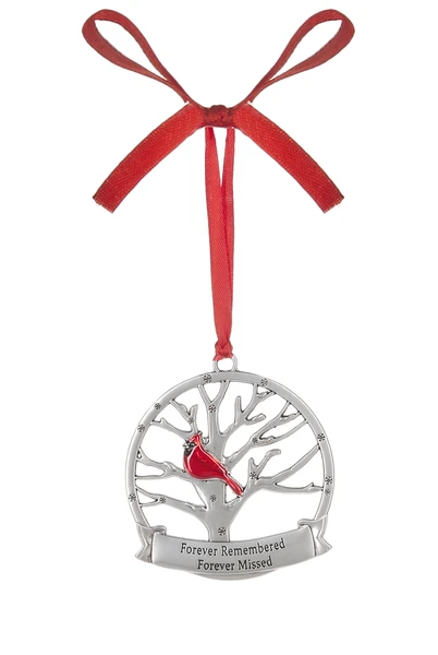 Silver finish Zinc tree with a Cardinal perched within.
