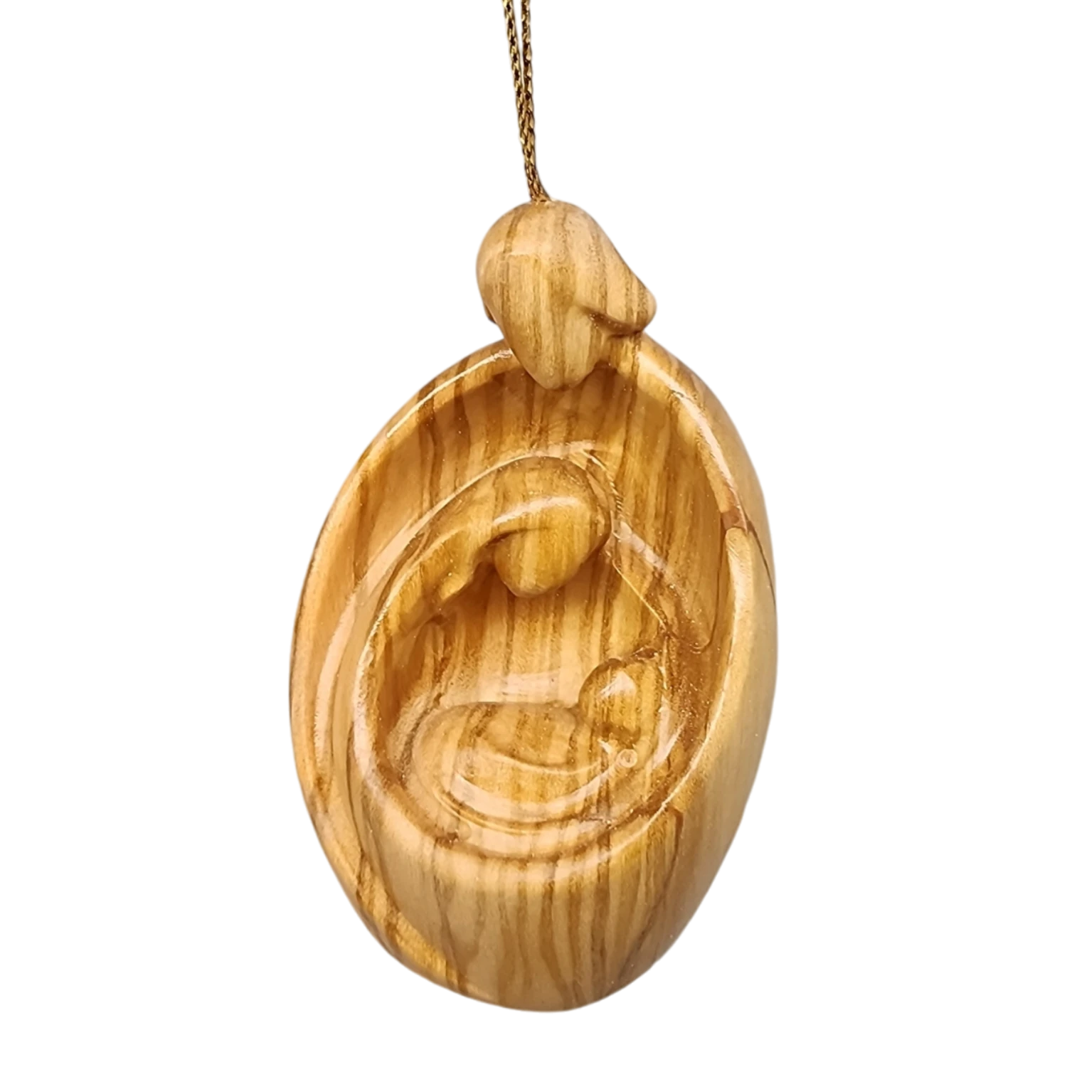 Presenting our beautifully crafted “Holy Family” nativity ornament, hand-carved from exquisite Olive wood in Italy. This stunning piece features an intricate depiction of Mary, Joseph, and Baby Jesus, capturing their serene and loving essence within a sleek, oval-shaped frame.