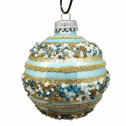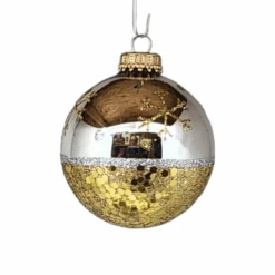 Krebs Value Glass Ball 4 Pack – Gold Sequin Snowflake On Silver