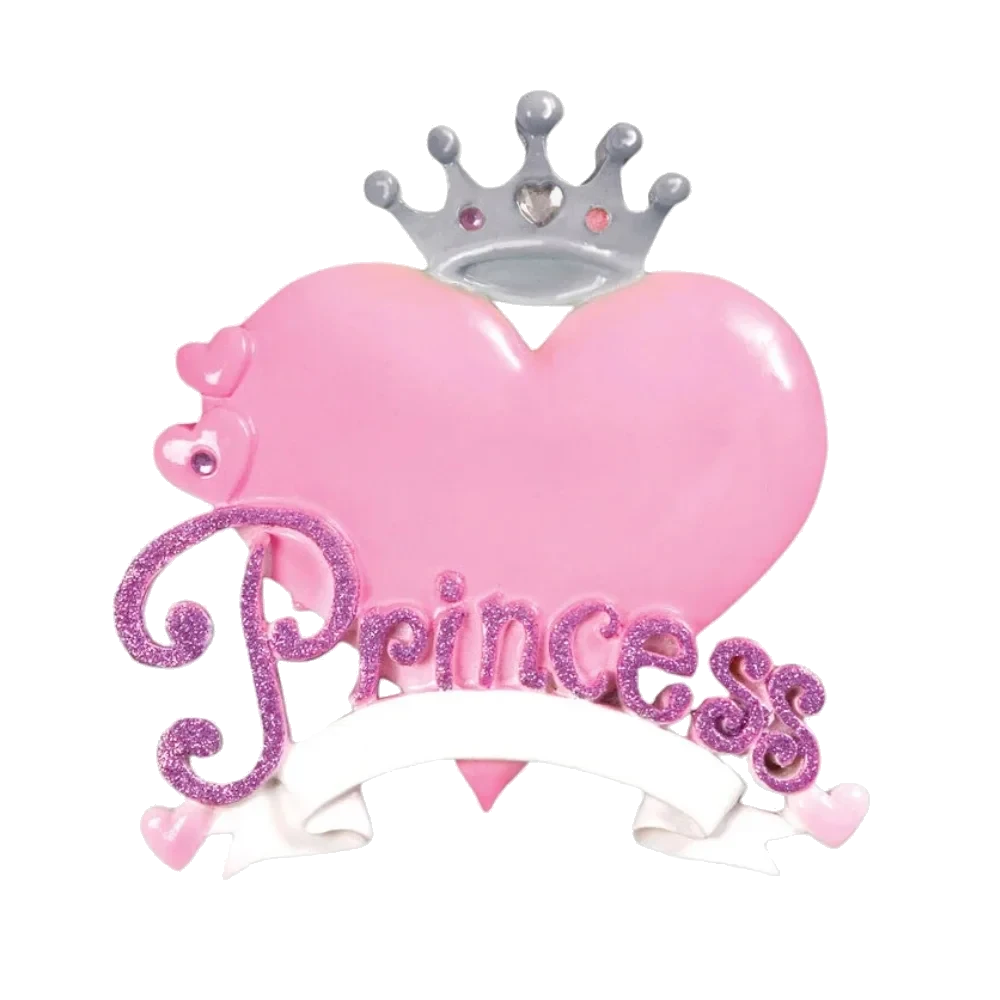 Add a touch of royal magic to your holiday decorations with this charming princess ornament. Featuring a beautifully designed pink heart adorned with a sparkling crown and the word “Princess” written in glittery script, this ornament is perfect for celebrating the little royal in your life. The delicate details and pastel colors create an enchanting piece that will stand out on any Christmas tree, bringing a sense of fairytale wonder to your festivities.