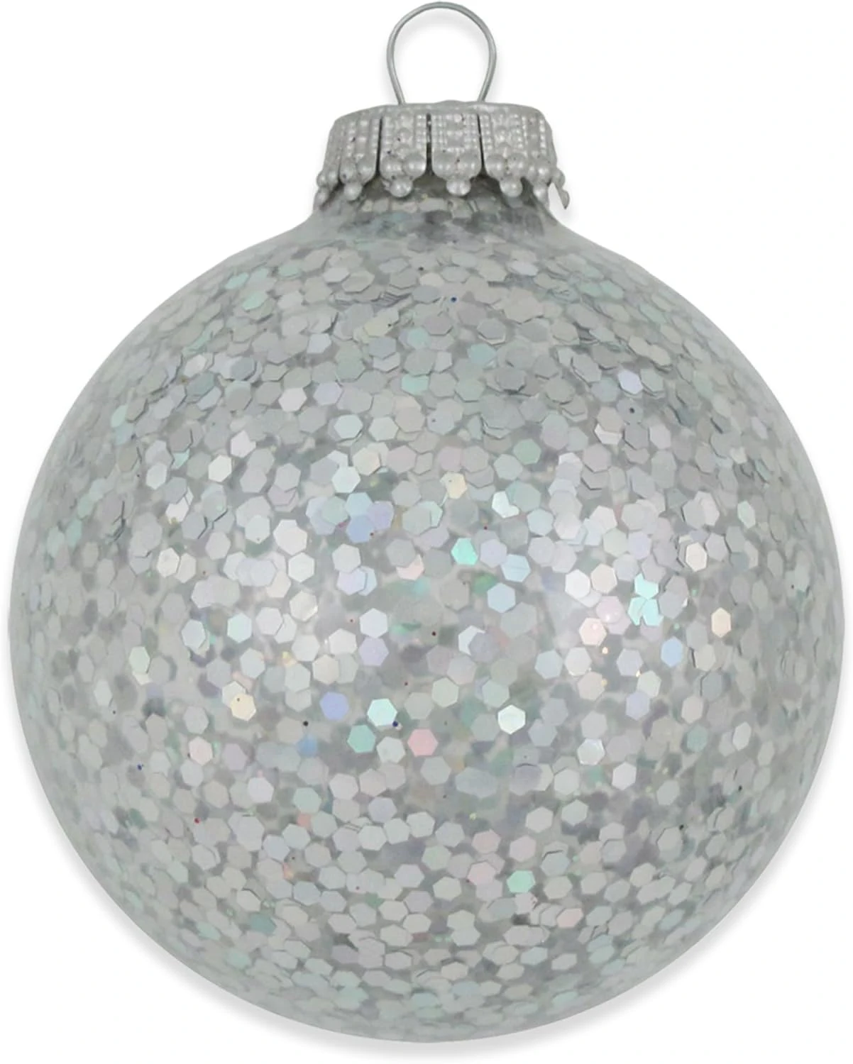 Elevate your holiday decorating game with this shimmering 6-piece set of silver spangle glass balls! Each ornament, measuring just over 2.5 inches, is a glittery delight, covered in dazzling hexagonal glitter that reflects the light beautifully. Perfect for hanging on your Christmas tree or adding a dash of sparkle to wreaths and garlands, these ornaments create a whimsical, celebratory atmosphere in any setting.