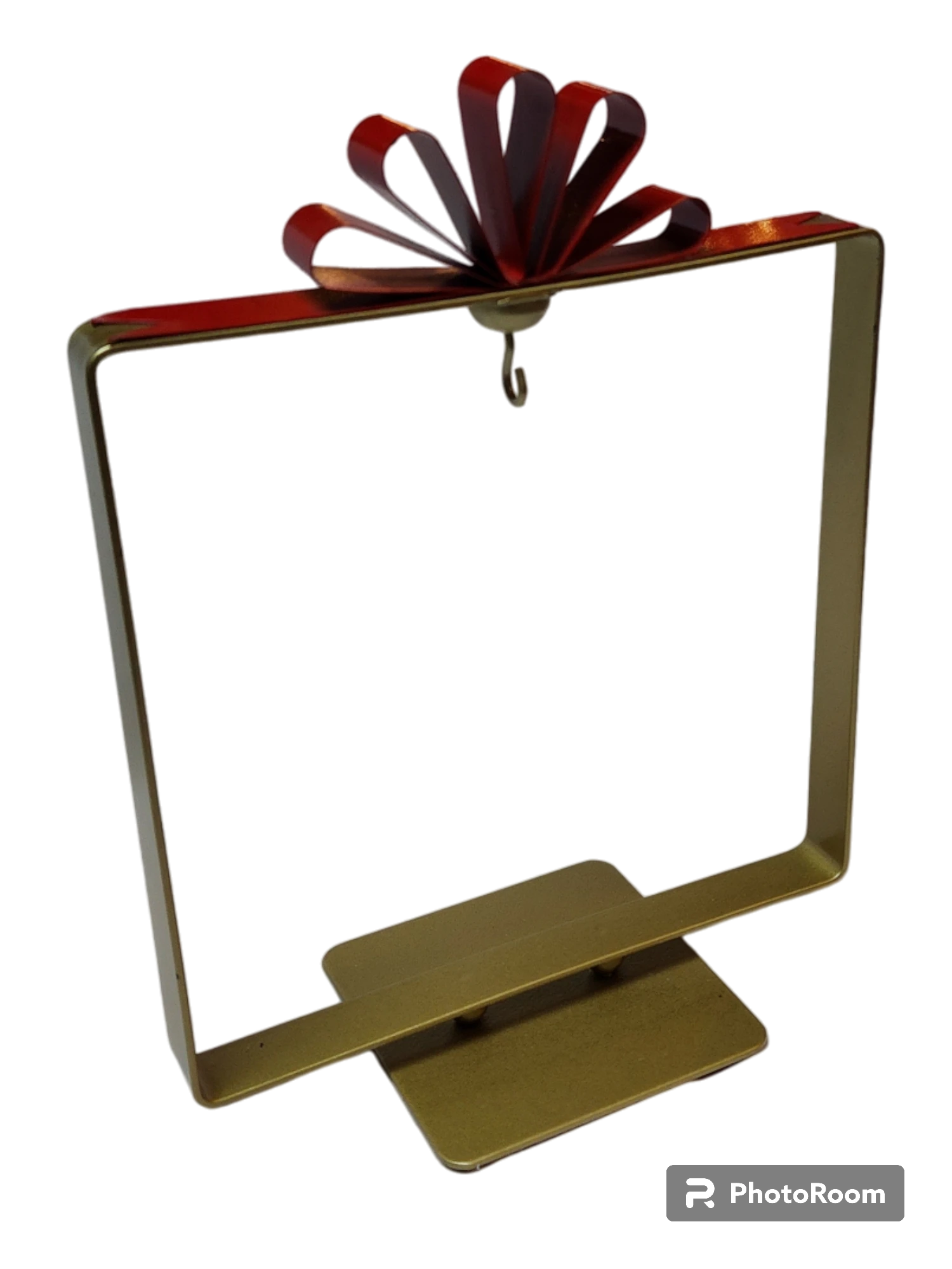 Each gold finished ornament holder has a festive red bow on top, to add a festive feeling to your holiday decor.