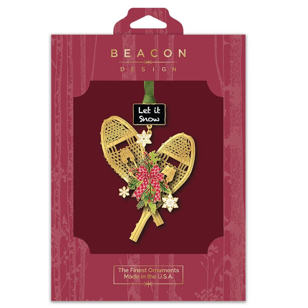 You will be saying, “Let it Snow!” when you see these gorgeous snowshoes. The 24k gold with bits of color make this Snowshoes ornament a great piece for any holiday decorations